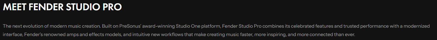 A$249.00Fender Studio Pro 8 Fender Studio Pro is the next evolution of modern music creation. Built on PreSonus’ award-winning Studio One platform, it combines trusted performance with a modern interface, Fender’s renowned amps and effects, and...